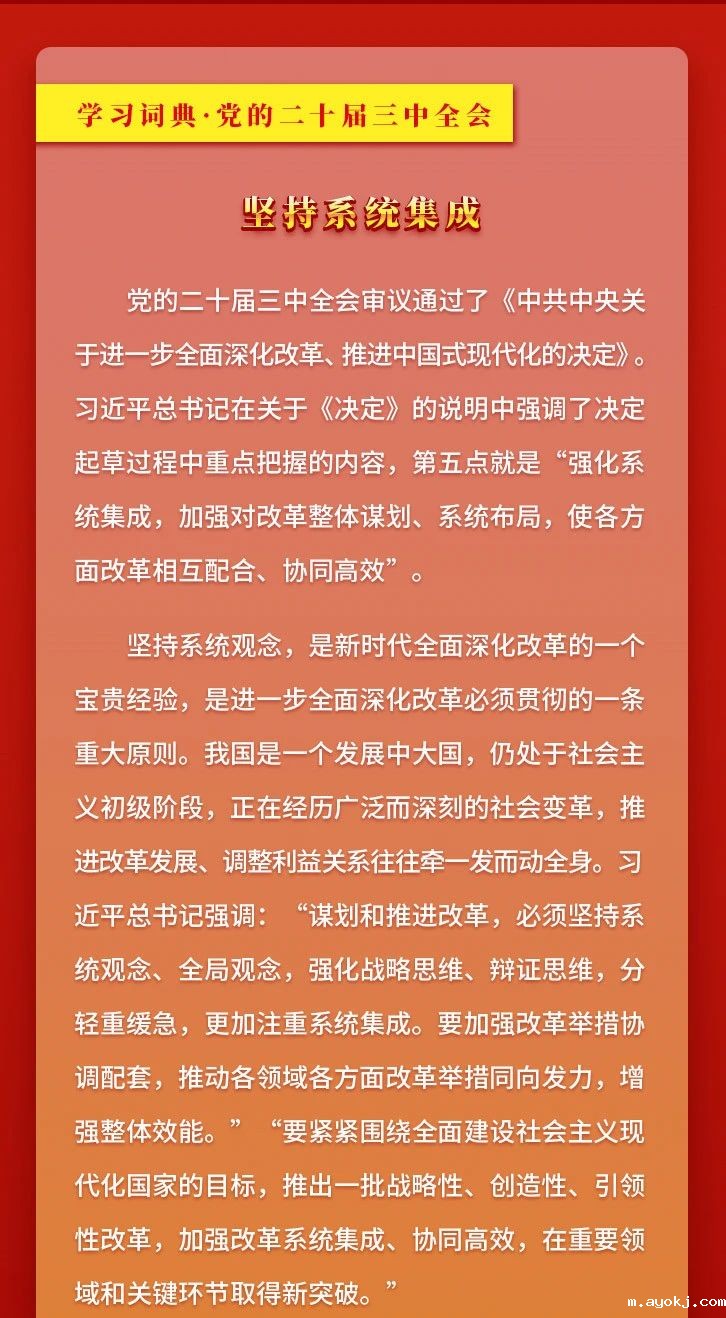 学习词典•党的二十届三中全会 | 坚持系统集成