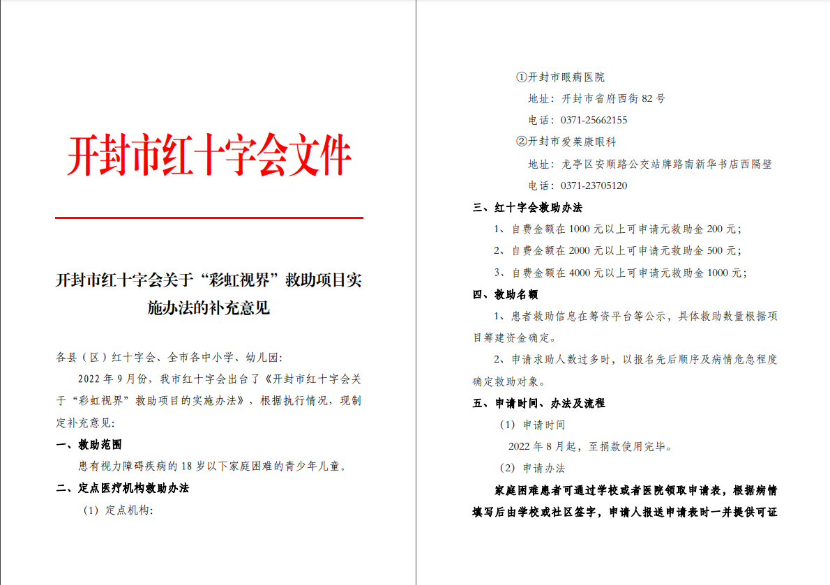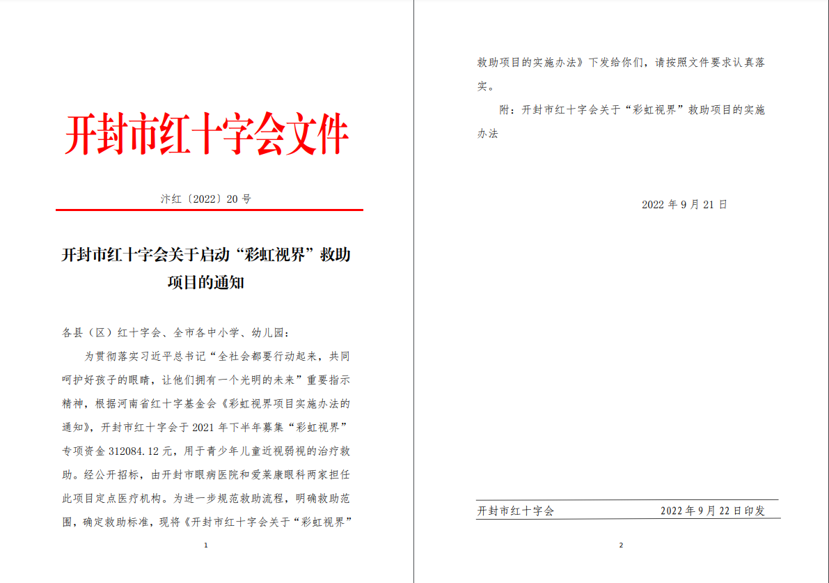 关于启动“彩虹视界”救助 项目的通知